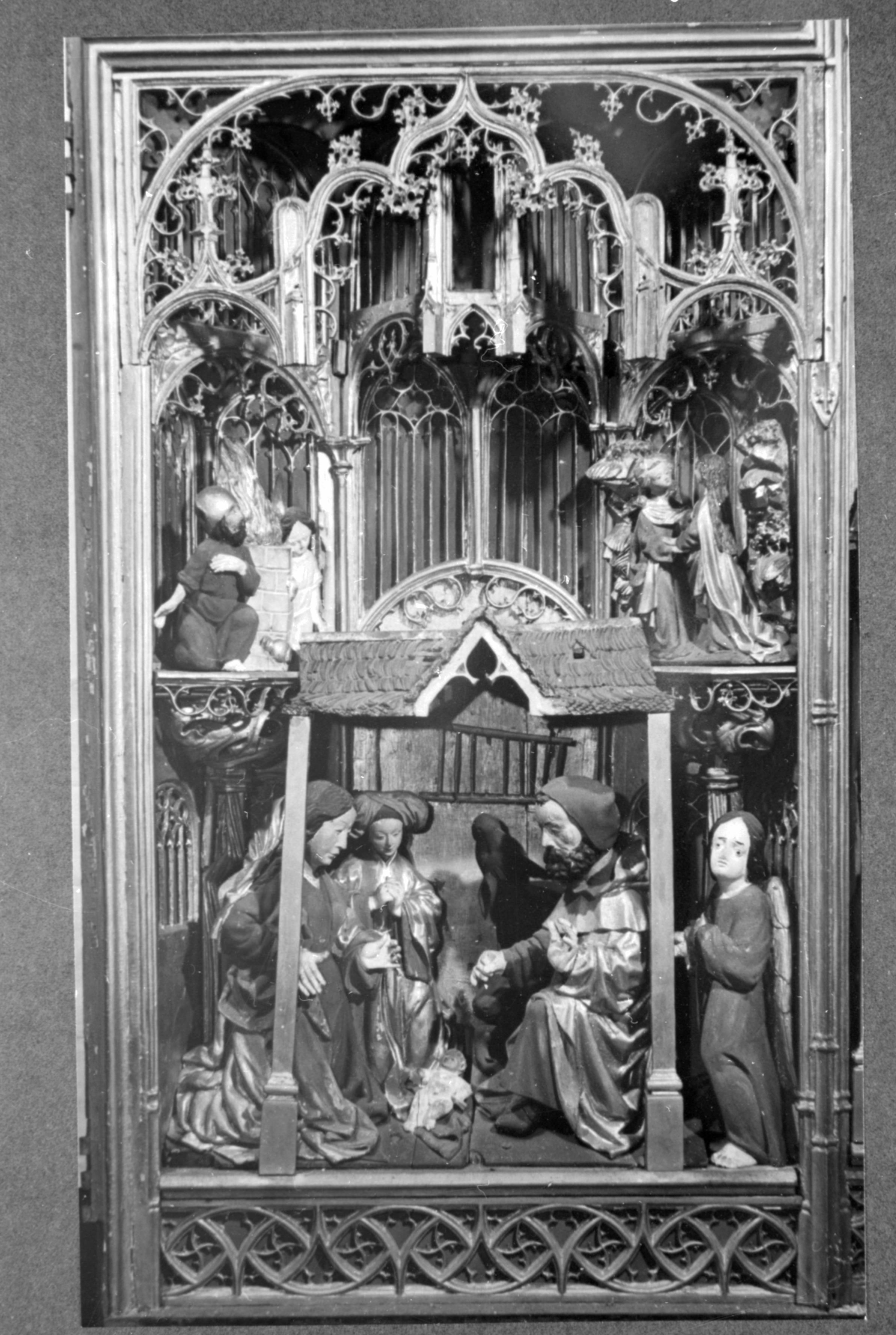 • Detalj av altarskåp, nederländskt arbete, omkring 1500, kompletterat 1680.