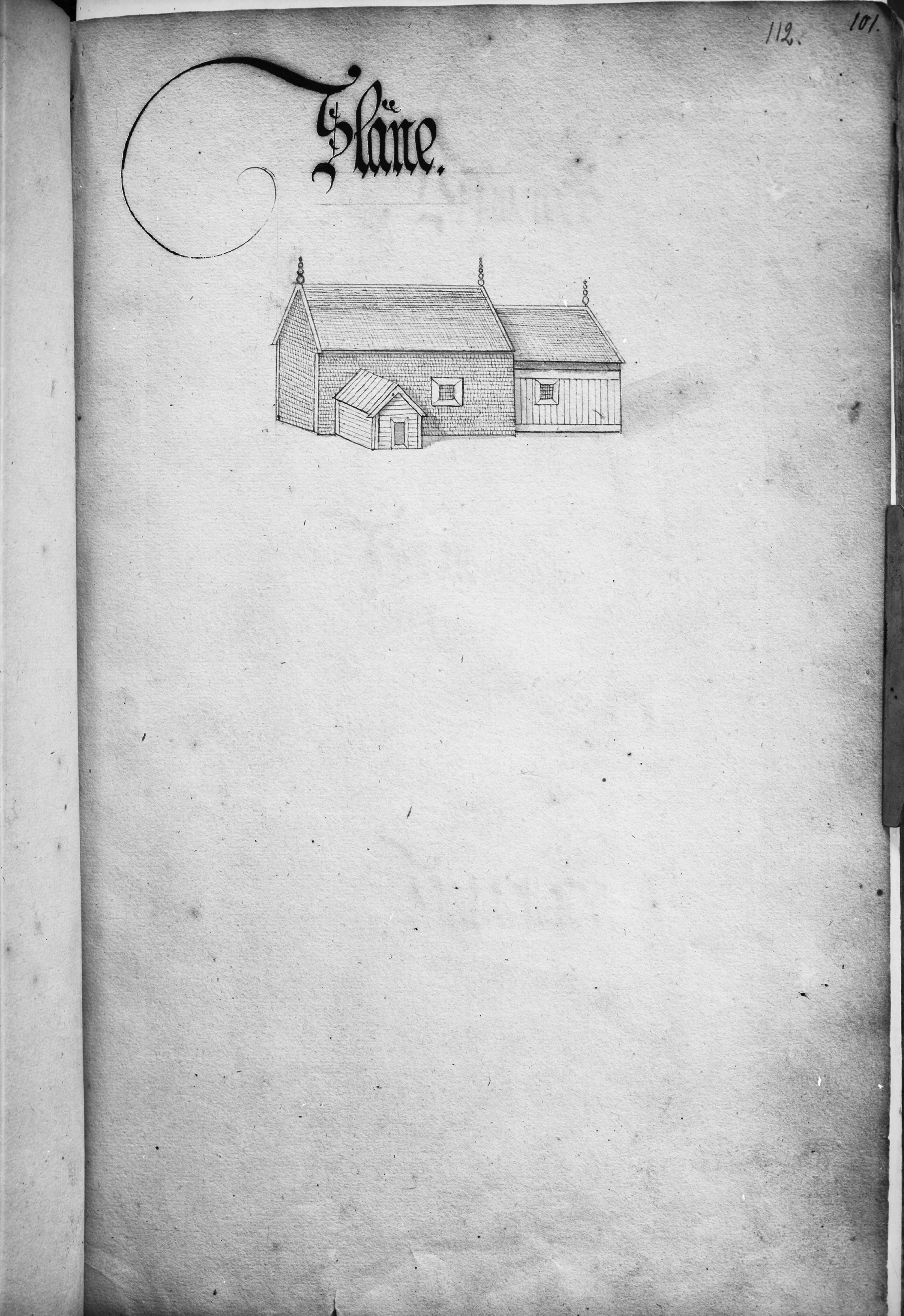 • Kyrkan, teckning ur Peringskiölds Monumenta, avfotograferad.