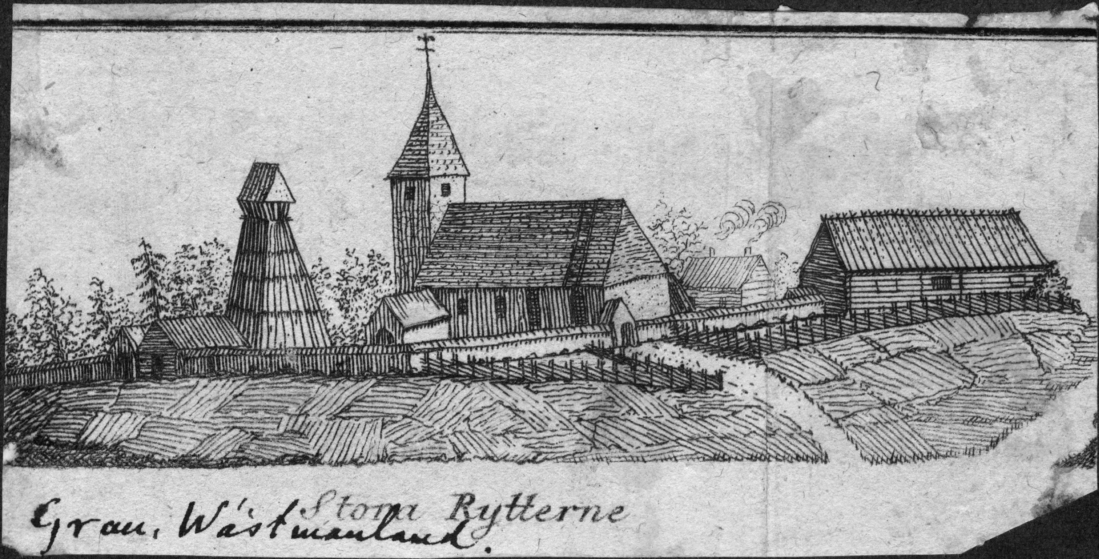 • Stora Rytterne kyrka. Teckning ur Grau: Beskrivning över Västmanland.