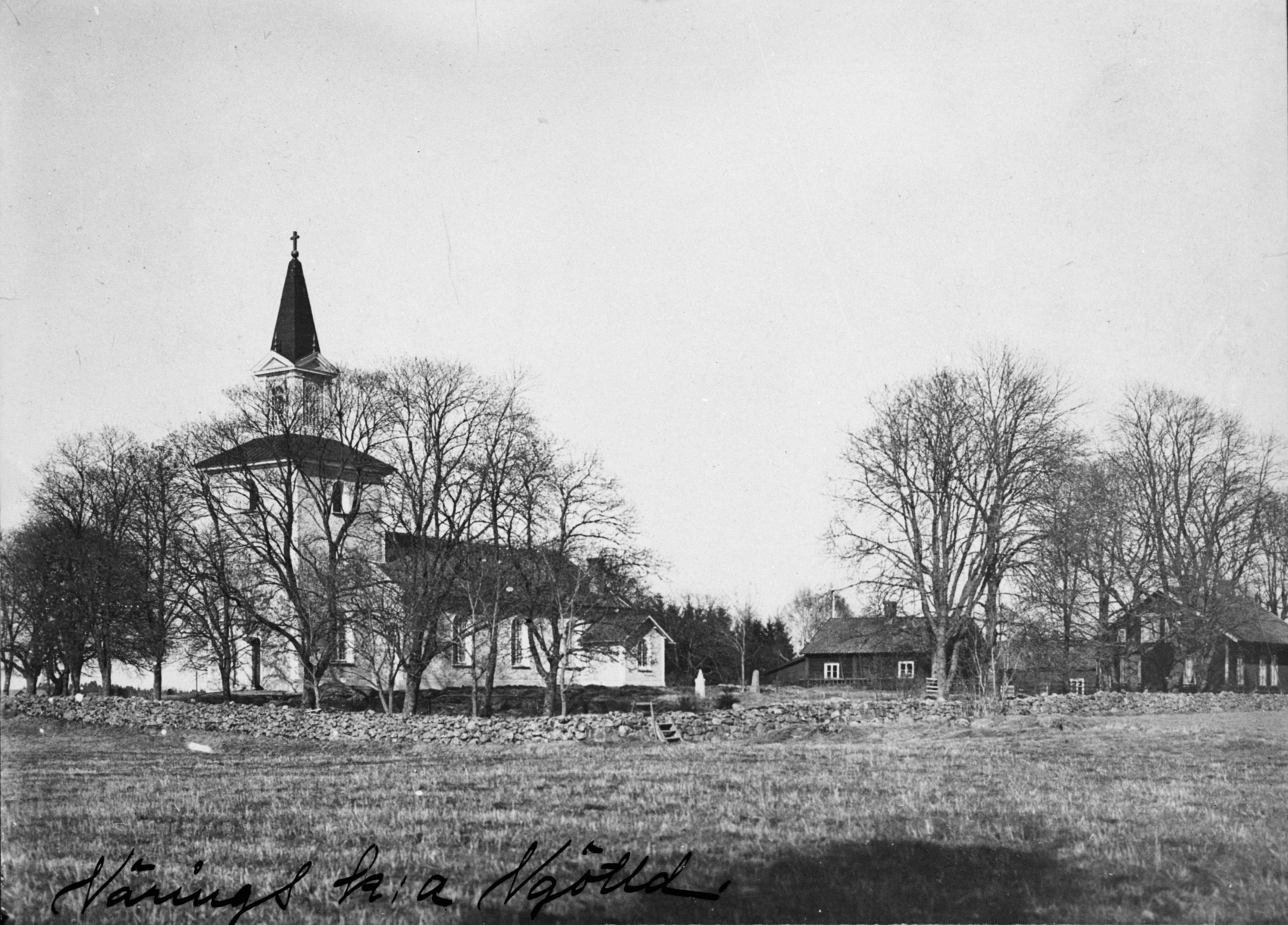 • Kyrkan från norr. Kyrkan har ett lågt torn. Efter tillbyggnaden.