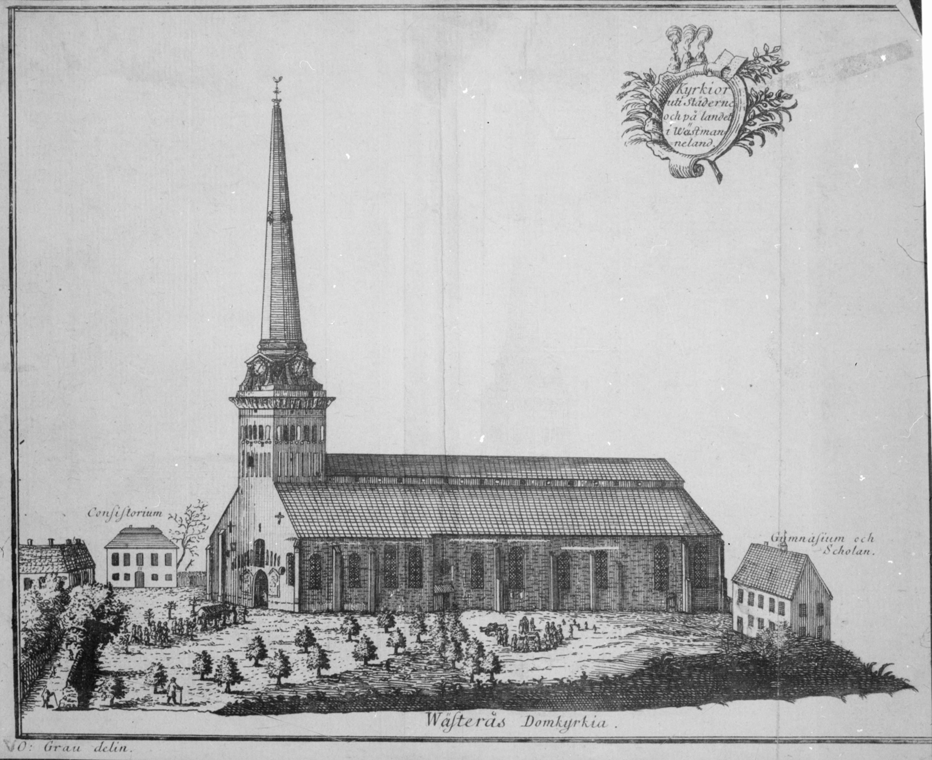 • Västerås domkyrka. Teckning ur Grau: Beskrivning över Västmanland.