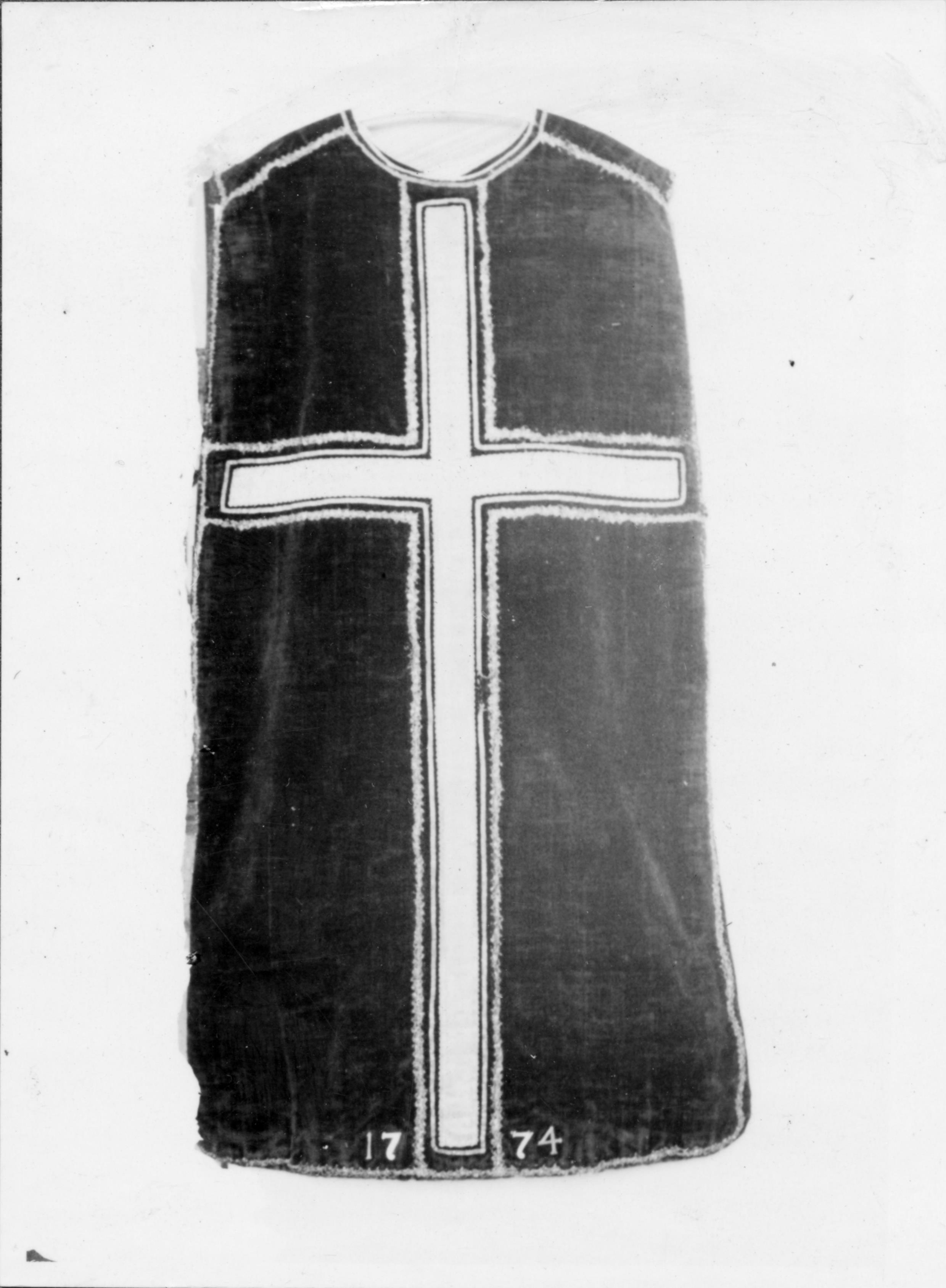 • Mässhake av brun sammet, baksida. Före renoveringen.
