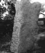 Runsten (Vg 106), gnejs, 1,15 m hög, 0,45 m bred och 0,2 m tjock. Runhöjd 7-12 cm. Ristningen återfinns på stenens sida. På framsidan finns en delvis bortflagrad bildristning föreställande en ansiktsm...