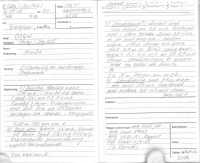 1) Runsten, rödaktig granit, 1.75 m h, 1.05 m br vid basen(NNÖ-SSV) och 0.3-0.6 m h. Runhöjd 7-14 cm. Ristningen vettermot ÖSÖ. Övre och SSV kanten avslagen och saknas. - Korsprydd.0.25 m NNV om 1:2) ...