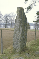 Runsten, granit, ca 2 m hög, 0,90 m bred (NÖ- SV) och 0,35-0,2 m tjock. Runinskriften som täcker hela V smalsidan består av 2 rader. Runornas höjd: 15-11 cm; i övre delen på grund av utrymmesskäl någo...