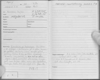 Runristning på kyrkväggen. Den finns i V ingången i kalkmuren på S sidan, innanför postalet omkring 1,50 m ovanför golvet, omkrin g 0,30 m Ö om portalens innerkant. Ristning i murbruket en övre rad av raka, staplar i följd sannolikt icke runor. I varje fall k an ingen säker runa här konstateras. Nedanför denna rad och något th: "far-th". Se ristning i boken.