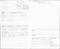 1) Runsten av gråsten 1,6 m h, 0,5 m br (80-380cg) och 0,5 m tj.Ristning på V - och S-sidan. Runhöjd 0,14 m. 2) Ornerad kalkhäll1,45 m l, 0,6 m br och 0,15 m tj. Rest av ornament, troligen drakslinga....