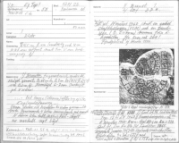 Runsten, fragmentarisk, nedre del, rödgrå granit, 0,65 m hög, 0,7 m bred (NNÖ-SSV) och 0,3 m tjock. Runhöjd 6-7 cm. Enligt upplands runinskrifter lyder inskrift på V sidan:"..lät hugga (stenen) efter sig själv, Englandsfararen, ...morfar (eller farfar)." N därom liten tall, 0,15 m tjock. RAÄ-skylt av metall ngt böjd. Uppmålad 1988.