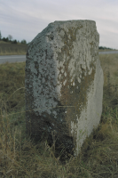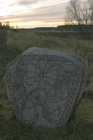 Runsten. SIGNUM: U 859. Granit, 1,4 m hög, 0,9 m bred vid basen 1,5 m bred i övre delen (N 5cg V-S 5cg Ö) och 0,4 m tjock. Runhöjd 4,5-8 cm. Ristningen vetter mot Ö. Ursprunglig plats några meter åt Ö. Flyttad 1931 vid omläggning av landsvägen. Enligt Upplands runinskrifter lyder inskriften:"Fastbjörn och Torunn läto uppresa (stenen och) göra bron efter Ing(fast), sin man. Gud hjälpe anden. Åsmu...