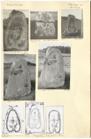 1) Runsten, röd granit, 1,15 m h, 1,25 m br (60-260cg) och 0,35 mdj. Runhöjd 6-7 cm. Ristningen veter mot NV. 1 m SV om nr 1 är:2) Runsten, fragment av, grå granit 0,3 m h, 0,65 m br (NÖ-SV)och 0,4 m dj. 1 m SV om nr 2 är: 3) Runsten, fragment av grågranit, 0,3 m h, 0,65 m br (NÖ-SV) och 0,4 m dj. Ca 50 m VSV omnr 3, ca 2 m NV om väg (NÖ-SV) och 15 m NÖ om bäckfåra är: 4)Runsten, grå granit 2,05 m h, 1,25 m br (NÖ-SV) och 0,4 m dj.Runhöjd 8,5-10 cm. Ristningen vetter mot SÖ. Ca 35 m SV om nr 4,ca 7 m SV om bäckfåra och 2 m NV om väg (NÖ-SV) är: 5) Runsten,grå granit, 1,35 m h, 0,8 m br (30-230cg) och 0,3 m dj. Runhöjd8-9 cm. Ristningen vetter mot SÖ. Ca 11 m SV om nr 5 är: 6)Runsten, gråsvart, 1,65 m h, 0,8 m br (40-240cg) och 0,3 m dj.Runhöjd 8-9 cm. Ristningen vetter mot S. T Beskrivningen är inte kvalitetssäkrad. Information kan saknas, vara felaktig eller inaktuell. Se även Inventeringsbok.