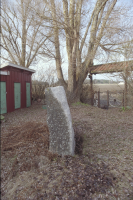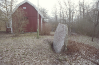 Runsten, granit, 1,6 m hög, 1,4 m bred (ÖNÖ-VSV) och 0,2-0,4 m tjock. Ristningen åt SSÖ. Runhöjd 7-8 cm. Se skiss i inventeringsboken. Enligt Upplands runinskrifter lyder inskriften:"Jorund och Brynj...