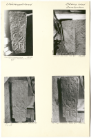 Liljesten, enkel, 1,23x0,41-0,52 m st och 0,18 m tj, av gulaktig sandsten. Dekormotiv: livsträd med hjärtpalmett samt palmettkors. Runinskrift på hela kantlisten. Enligt uppgift låg stenen tidigare so...