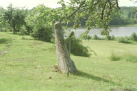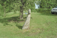 Runsten, granit, 1,6 m h och 0,8 m br vid basen, något avsmalnade uppåt, 0,25-0,4 m tj. Runslingans br 9-11 cm. Ristningen vetter mot Ö. "Ingefrid lät resa denna sten efter Öulv, sin fader och stav. Öulv gjorde detta ting i öster (?). Assur högg (runorna). Ginna utförde (tingsplats) i väster(?)". * hikifriþr * lit * r-isa * sain * þna * iftiR * ayulf * faþur * sin * auk * staf * ayulf- (k)iar...