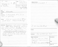 Runsten, grå granit, 1,13 m h, 0,68 m br vid basen (NV-SÖ) och 0,32 m tj. Ristningsytan vänd mot SV. Runhöjd 8 cm. Stenen står påcementsockel. Flyttad kortare bitar pga grustäkt och vägomläggning ett ...