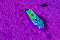 Status: Idag står den nästan 30 m långa skutan på 23 m djup mitt i Karlmarsund. Fartygets akter har fallit ut och ligger 2-3 meter akter om skrovet.