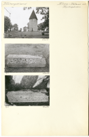 1) Runinskrift, i kor, bestående av fyra runor som har inristats,i våt, medeltida puts. Runinskriften är 6 cm l och 3 cm h. Intillkyrkan och NV om denna på kyrkogården är delar av och hela 2)liljesten...