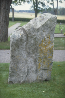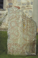 Runsten 1,75 m h. L 1 m br och 0,35 m tj. Av ljusgrå gnejs. Stenenlagad. Inskriften åt S. Runslingans bredd 8-9 cm. Påträffades ikyrkans södra grundnr 1932 vid förstärkningsenheten.ILLUGE LÄTRESA STENEN EFTER TINGFAST SIN SON... -FAST EFTER SINBRODER(ristad av Öjer) Stenen flyttad ca 60 m efter 1951 årsinventering från vägkant till kyrkogården. Se skiss! Beskrivningen är inte kvalitetssäkrad. Information kan saknas, vara felaktig eller inaktuell. Se även Inventeringsbok.Stäng