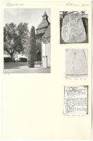 Bildsten, i runstil, grå granit, 1,35 m hög, 1,1 m bred (N-S) och 0,45 m tjock. Den ristade sidan vetter mot Ö. Tecken (ej runor) finns i slingan. Uppmålad. 0,5 m S härom är skylt av lättmetall genom ...