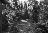 • Ca 12 m V 40cg N om sämre skogsväg, omedelbart V 30cg S om nästanutplånad stig, i obetydlig glänta, omedelbart Ö om och nedanförmoränrygg med berg i dagen