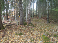 • Avsats i Ö-sluttande moränmark. Skogsmark. Granskog.