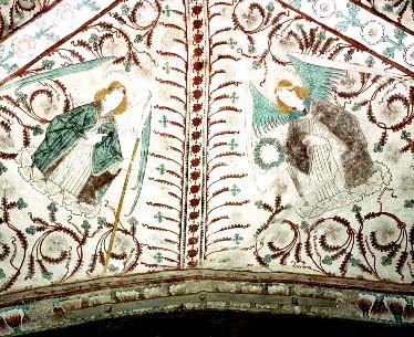 • valvens målningar fräscha och klara, av väggarnas återstår endast fragment
