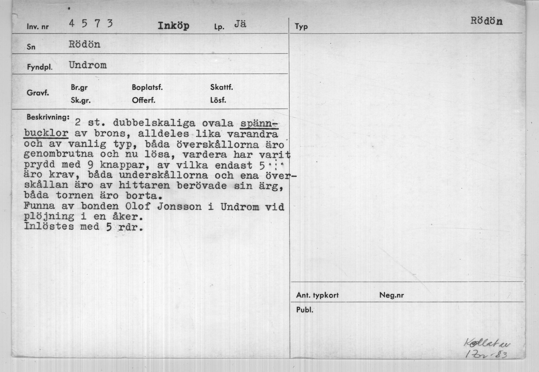 • Tillkomst 2005-12-12 av Historiska museet.