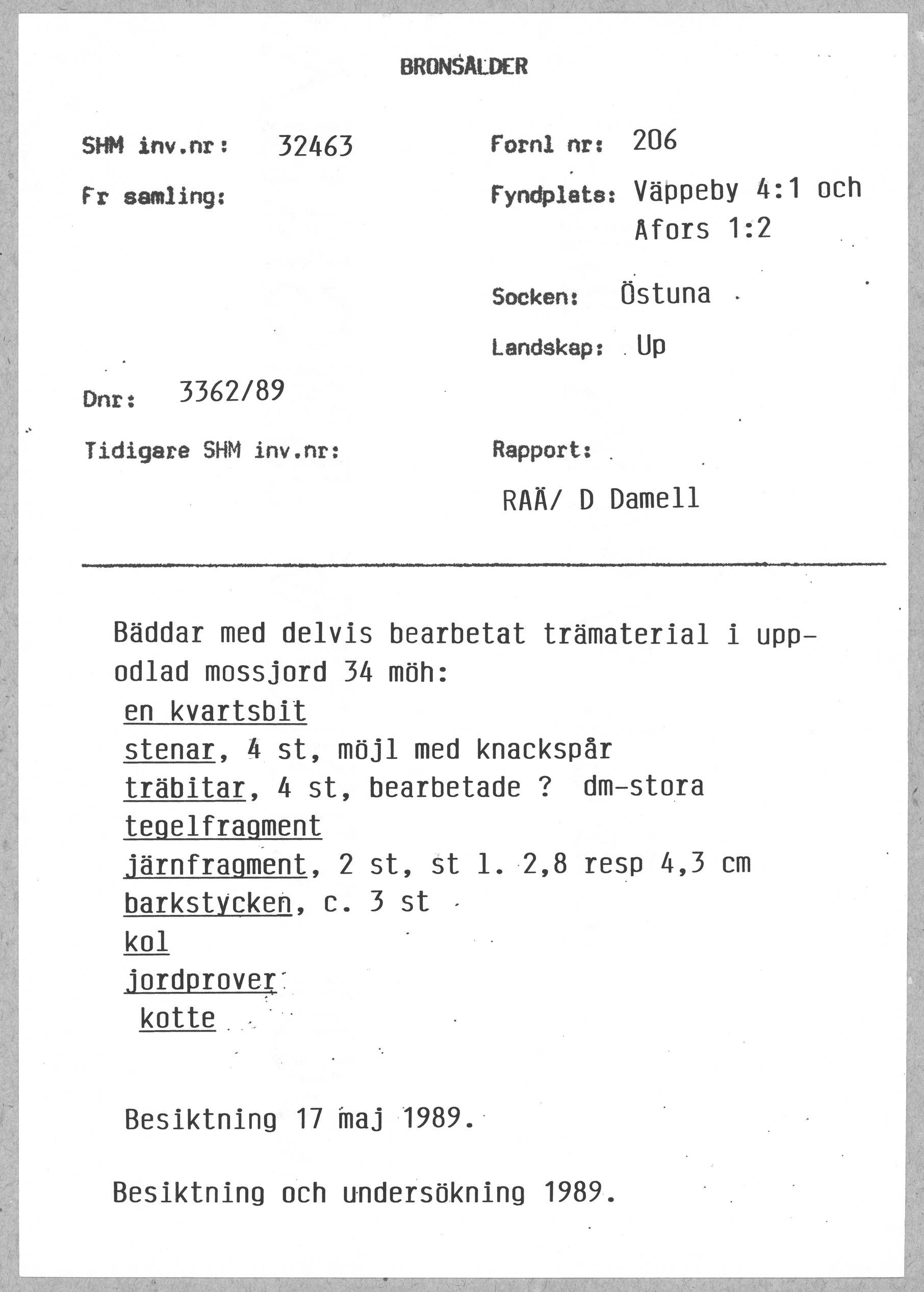 • Tillkomst 2004-10-18 av Historiska museet.
