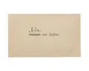 • Ett visitkort från Arla von Sydow, daterat 1922, vikt i nedre högra hörnet.