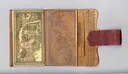 • Röd plånbok i skinn med kalender. Inskription "Tillhörande Johan Emilius Bögh. 1837.
