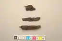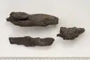• 3 fragment av sönderfallen kniv med vidsittande slida.