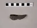 • Spånavslag av ovrdovicisk flinta med tydlig plattform och slagbula. Bruks retusch på ena långsidan.