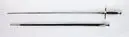 • Serafimerordens värja, 11917:1. Platt päronformad knapp och nitknapp av silver. Snedräfflad kavel av ebenholts. Parerstång av silver.