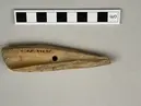 • Verktyg av ben med håll genomborrat på baksidan med framdelen avbruten kan ha varit en harpun eller annat redskap.