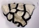 Lös höger gallerärm till hovdräkt. Puffärm och ensömsärm i vit sidensatin, täckt med vitt tyll. Svarta maskinsydda sidenband av snedklippt sidensatin utgör gallret. Ärmen är fodrad med tunt tuskaftsvävt bomull. Öppningen vid ärmhålet är fäst med rynktrådar och kanterna har lämnats råa. Ärmöppningen är kantad med ett svart sidenband och fäst med fållstygn.