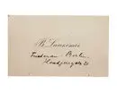 • Ett visitkort från B. Lauzemis, utan datum. Handskrift "....".