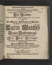 En christens andelige lijf i Christo, sampt gudelige lust at skillias hädan, och wara med Christo, framstält uthi en kort lijk-predikan, öfwer Pauli epistels, til de Philipp. I. cap. 21.22.23.24.v. som blef hållen wid den hederlige, : gudfruchtige och dygdige, nu sahl. matronans, Karin Matthis dotter Haffenbergs, den ehrewyrdige och wällärde mannens, herr Paul Nörings, tro-flitige och waksamme kyrckioherdes öfwer Morlanda giäld, kiäreste hustrus begrafning, i Morlanda : kyrckia i närwaro af en anseenlig och hög-förnäm försambling af adelige och månge andre ståndz-personer på den 12. novemb. 1703 [sic] . Uthaf Friederich Bagge. ... Götheborg, tryckt hos Zacharias Hagemann.