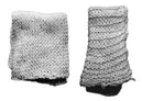 DISKDUKAR (diskunderlägg), tre stycken Av löst tvinnat, fyrtrådigt blekt ljusvekegarn. Rektangulära. Handstickade. Rät stickning fram och tillbaka med kantmaskor, den största hopstickad av två stycken, en duk lösare stickad. Längd: omkring 50 cm.--1 m.; bredd: omkring 30-50 cm.