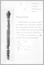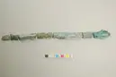 • Svärdsfragment av brons. Eggarnas kanter har fördjupade ränder. Den halvrunda överdelen har spår efter nithål.