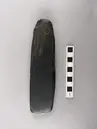 • Yxa av svart skiffer. En flat sida, den andra ojämt formad.