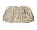 Kjol i åtta stycken av silvertyg med invävda öppna guldkronor. Silvertyget vävt i ett rombrutigt mönster med strålande stjärnor. Guldkronorna är placerade i mitten av rutorna. Kjolen har en oval form och mycket bred i sidorna. Två par veck på båda sidorna vid linningen samt ett parti med veck, upptill längst ut i kanten på båda sidor. Smal linning av beige siden, bredd: 8 mm. Linningen löper ut i ...