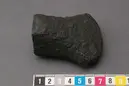 • Dubbeleggad stridsyxa av skiffrig amfibolit, förarbete.