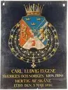 Serafimersköld för konung Karl XV av Sverige som kronprins och hertig av Skåne 1844-1859, ursprungligen upphängd i Riddarholmskyrkan, Stockholm.
