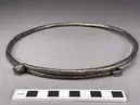 • halsring, ornamenterat; rombisk ändknapp och ögla i andra änden