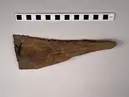 • Skulderblad från ett stort djur med håll inslagna vid ena långsidan. Är bland de osignerade fynden från stora förvar. har tolv håll kan vara en varpsticka?.