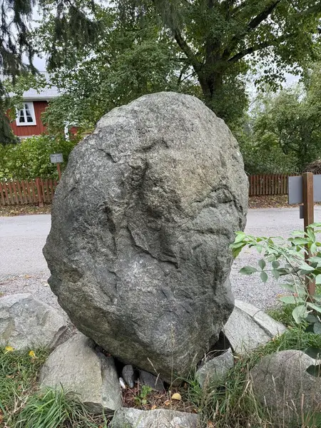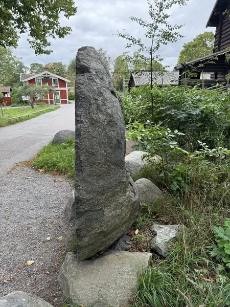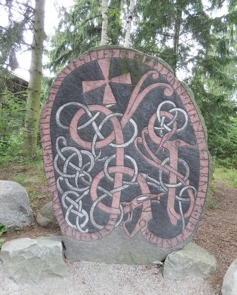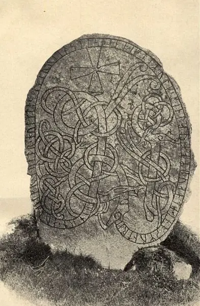 Runsten med inskrift, tolkat som: "Björn, Ödulv, Gunnar, Holmdis läto resa denna sten efter Ulv, Ginnlögs man. Och Åsmund högg"