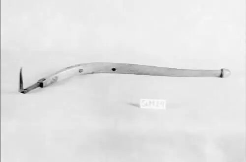• Bärkäpp med järnkrok och böjt träskaft. Bärkäppen (bärspaken) användes av stabbläggarna vid sågverken till att styra de plankor man bar på axeln.
