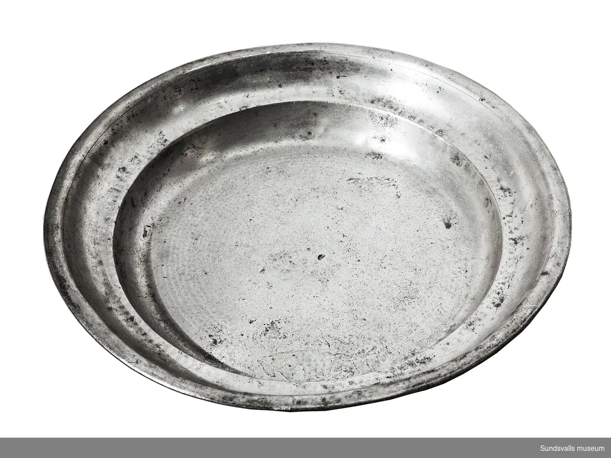 • Djupt tennfat med stämpel på brättet.