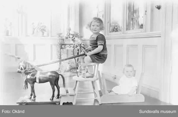 • Lekande barn. Förmodligen två av familjen Norströms barn. Deras far,Lennart Norström direktör vid Skönviks såg, moder "Pussi" Dora Louise Norström.