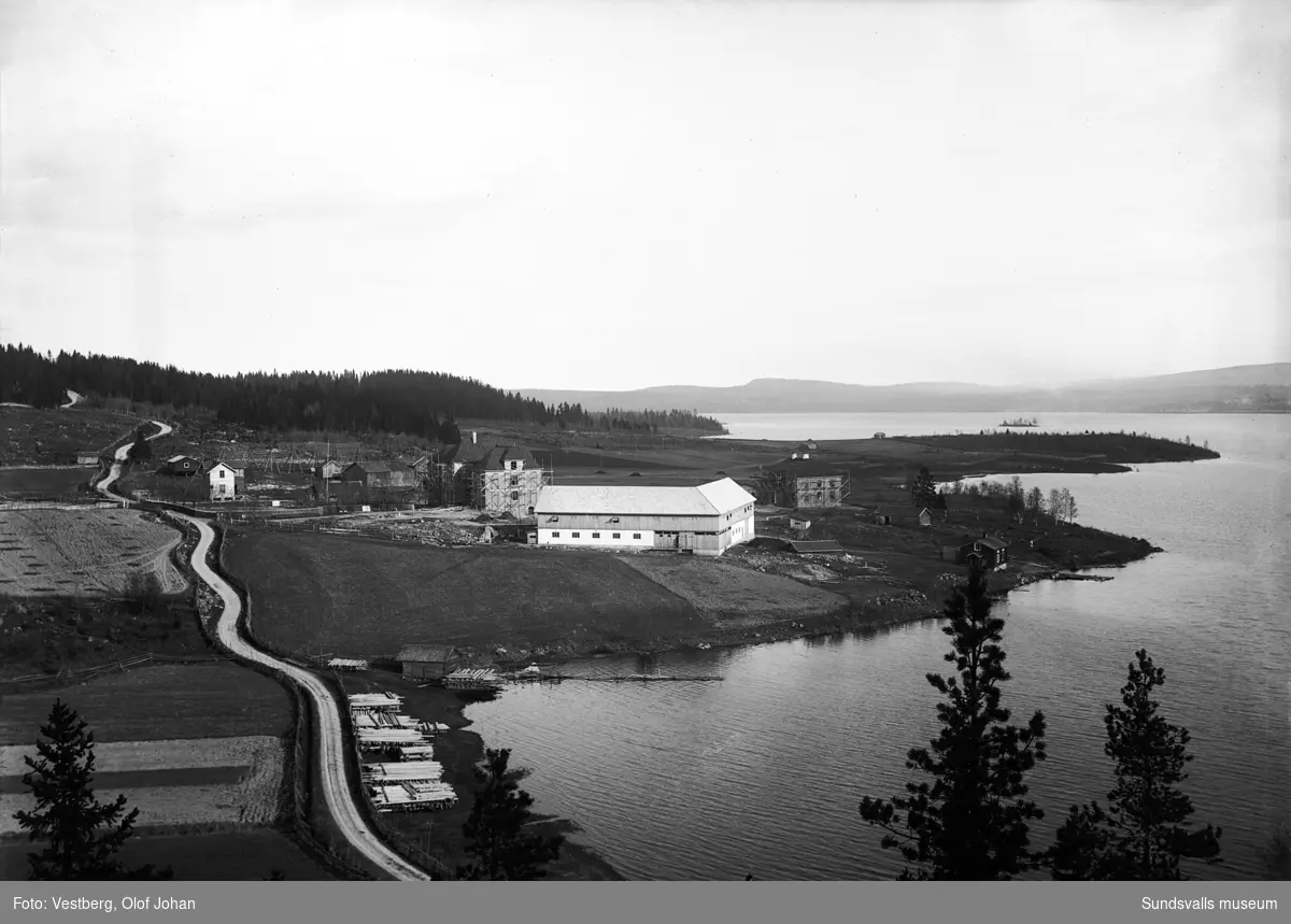 Ritningarne till såväl fattiggårdsbyggnaden som barnhemmet ha uppgjorts af stadsarkitekt N. J. Källander i Sundsvall och byggnadsarbetet har hafts på entreprenad af byggmästare C. A. Pettersson härstädes å hvars vägnar verkmästare K. Malmborg ledt arbetet på platsen. Rörledningsarbetena ha utförts af ingeniör Arv. Nilsson härstädes. Kostnaderna oberäknadt uthusbyggnaden, som kommunen byggt själf stiga till omkring 90.000 kr. Med anseende till de svåra transporterna till byggnadsplatsen skulle kostnaderna säkerligen stigit till betydligt högre belopp, om arbetet ej anlagts så praktiskt som skett. I stället för att ditforsla timmer från sågverken har byggmästaren af kommunen köpt mellan 3 och 4,000 timmer, hvilka försågats på stället medelst en provisoriskt uppställd såg. Och de murtegel som erfordrats för skorstenar och annat, ha slagits genom kommunens försorg.