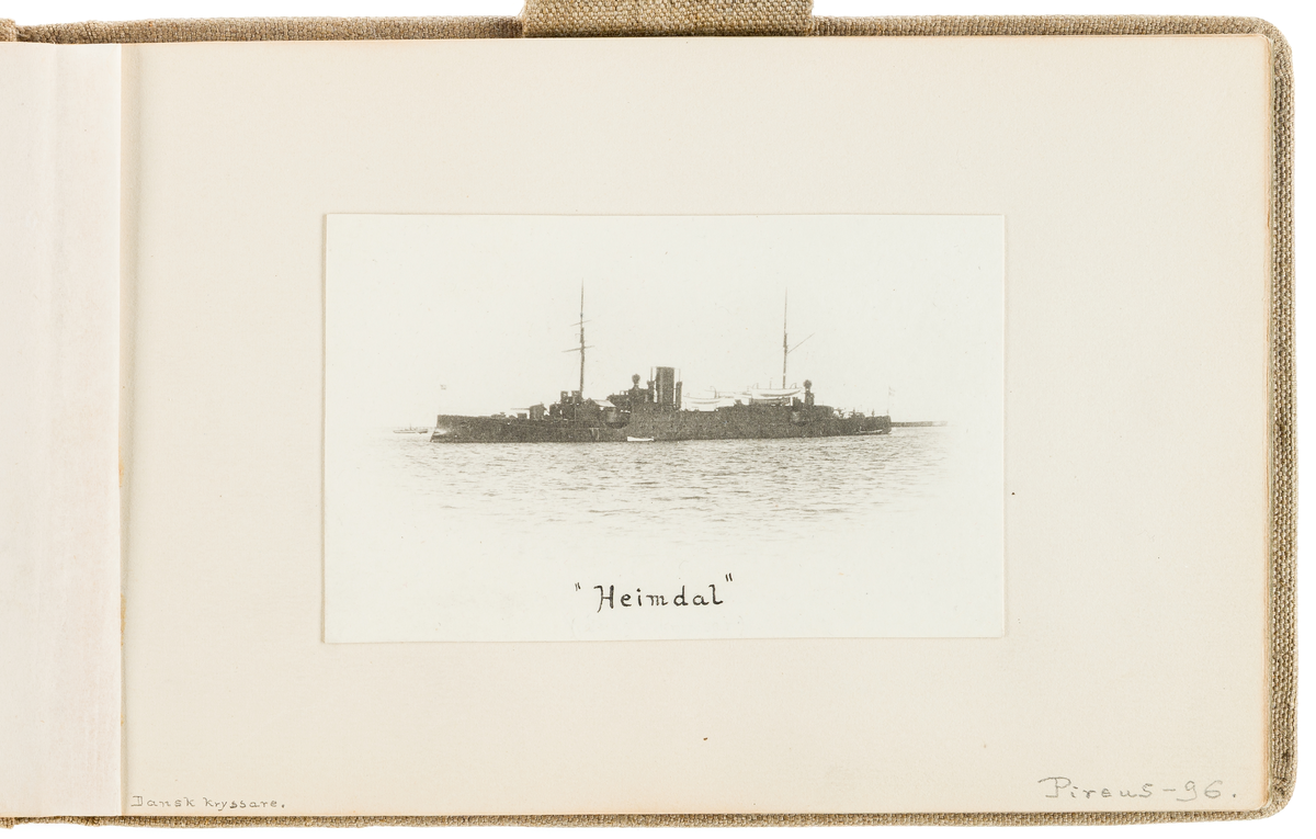 • Bilden visar den danska kryssare Heimdal till ankars i Pireus 1896.